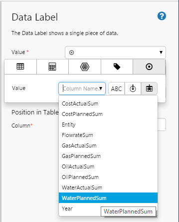 For example, the Data Label picutred below is on a Table Layout component; its Value property can be configured to use data from the Table Layout columns: