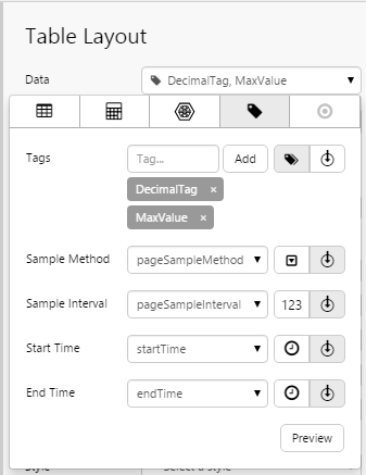 How you choose the Table layout's data depends on the component's property that you are configuring.