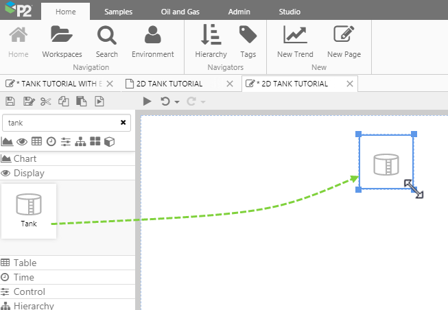 Drag and drop a Tank component onto the page, then resize by dragging on one of the corners. The Tank is in the Display Display group icon group.