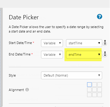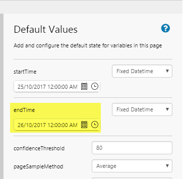endTime variable in the page Defaults endTime variable updated in the Date Picker endTime variable in the tank's Value tag