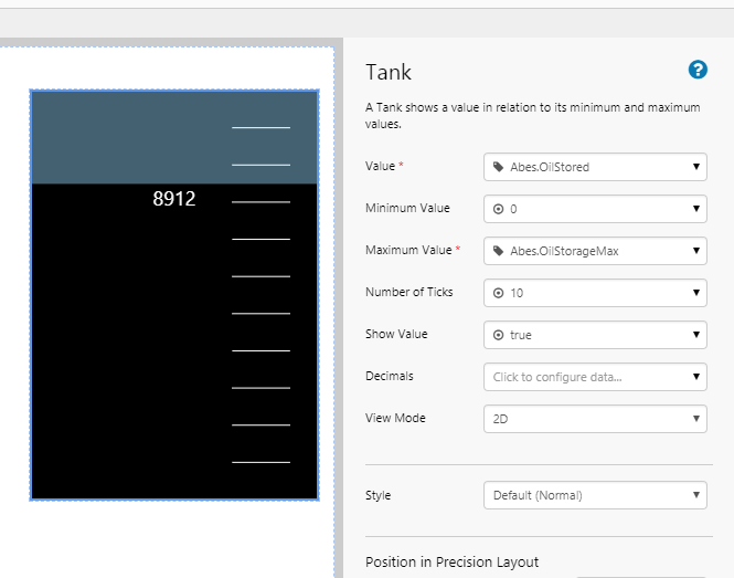 The Tank displays a data value as the percentage fill in a tank shape.