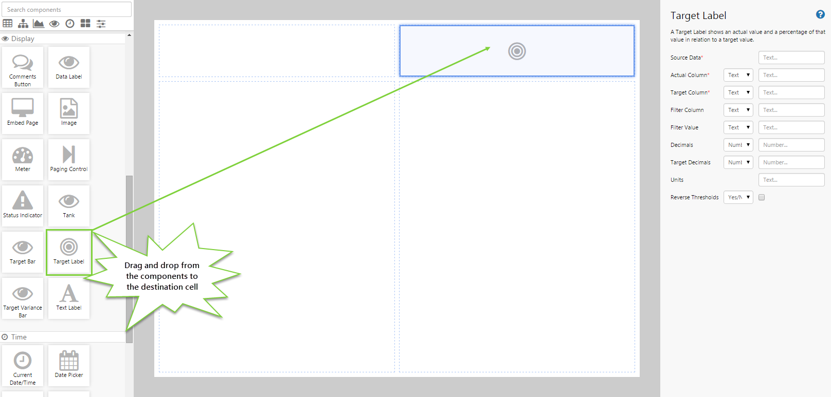 Drag and drop the Target Label component onto a grid cell.