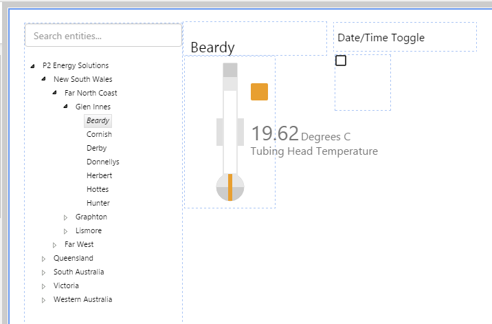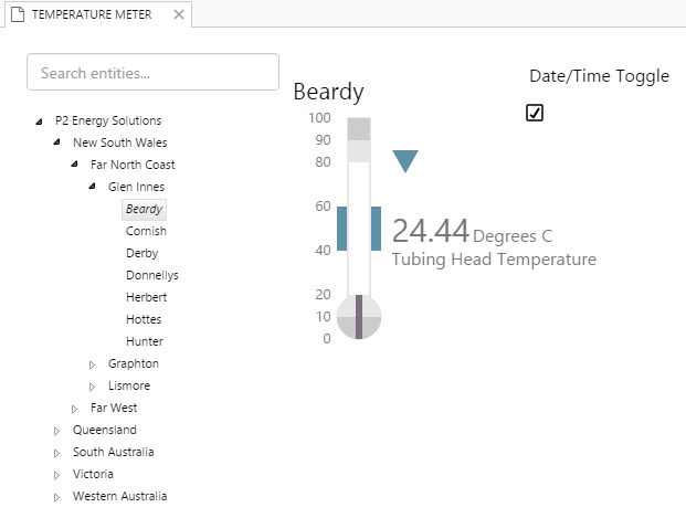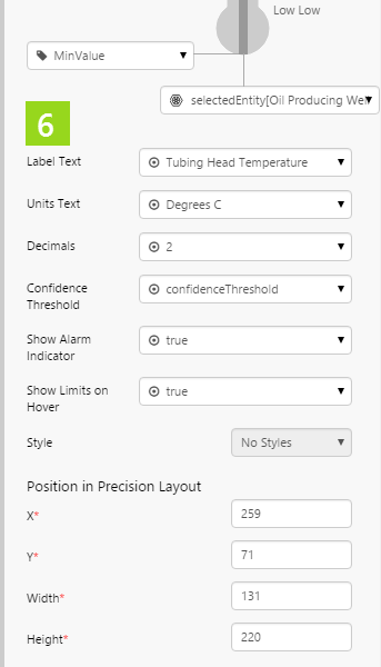 This assigns the selectedEntity's THT!Actual attribute value to the measured value: selectedEntity[Oil Producing Well]:THT!Actual. selectedEntity is a variable, which the end-user can change by selecting different entities from the hierarchy on the page.