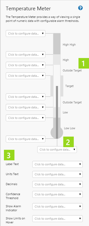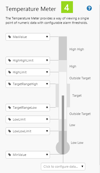 6. Configure the appearance of the temperature meter. For each separate property, use the Data Selector to select Value Data.