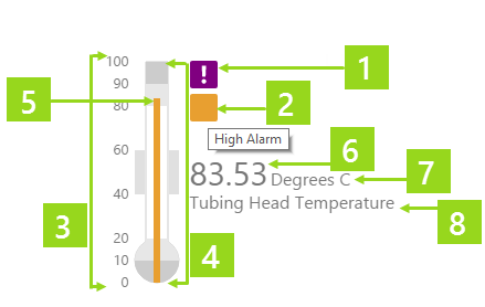 For example, you can configure a temperature meter to compare the actual value of the selected well's tubing head temperature against limits defined for that well, or against tags that contain fixed values for the various limits.