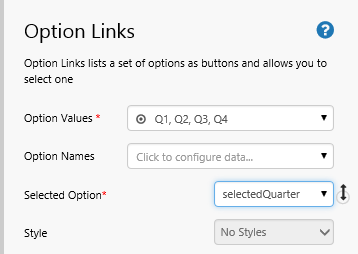 3. Type selectedQuarter in the Selected Option edit box.
