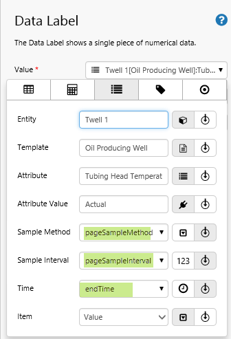 For example, when you drop an attribute onto the page, its Sample Method, Sample Interval and Time properties use the page default variables of pageSampleMethod, pageSampleInterval and endTime, respectively.