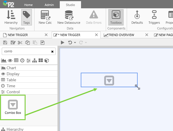 1. Drag and drop a Combo Box component onto the page, and drag the corners to resize it.