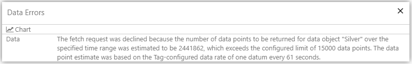 - For Raw fetches, you should configure the Scan Rate property of the tag in the Historian, or the Default Tag Scan Rate property in the Datasource in P2 Server Management. If the user is still getting this error, then they should consider falling back to one of the sample methods above (Average, Linear Interpolate, or Last Known Value) in order to down-sample the data.