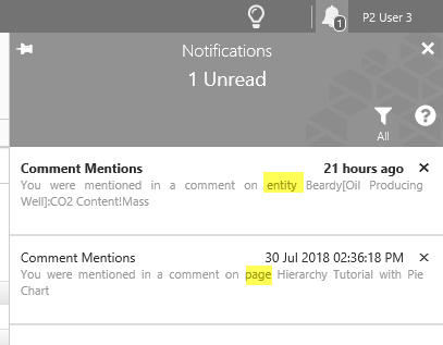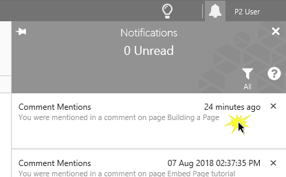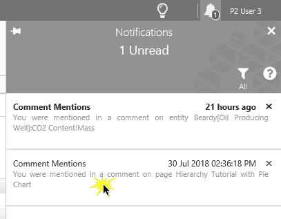When a user mentions you in a comment, a Comment Mention is added to your list of notifications, available in the Notifications Panel.