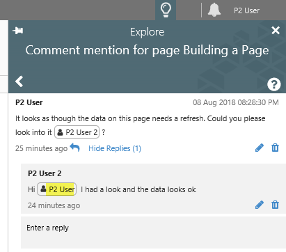 In the Notifications panel, click on a Comment Mentions notification to open the Comment mention in the Explore panel.