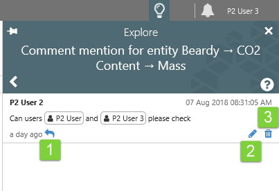 You can reply to the comment from the Comment mention. Editing and deletion of comments is dependent on whether it is a comment you wrote; otherwise, it depends on the privileges allocated to your assigned roles.