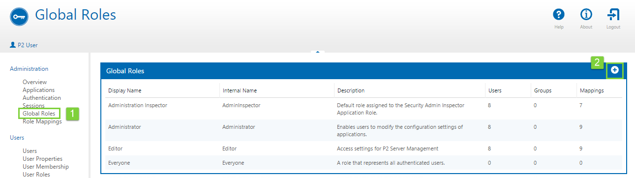 1. In P2 Security, click Global Roles (under Administration on the left).