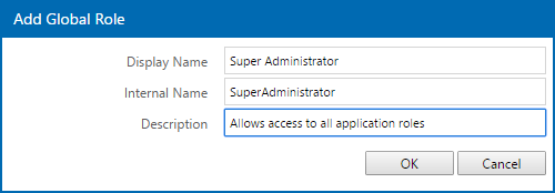 3. In the Add Global Role dialog box, type the name and description for the new global role, and then click OK.