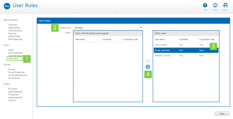 1. In P2 Security, click User Roles on the left.