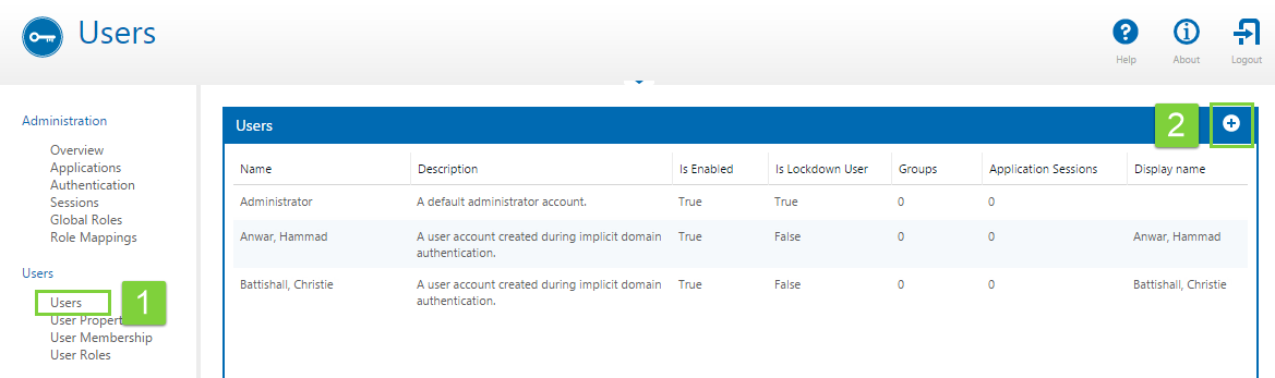 1. In P2 Security, click Users on the left.