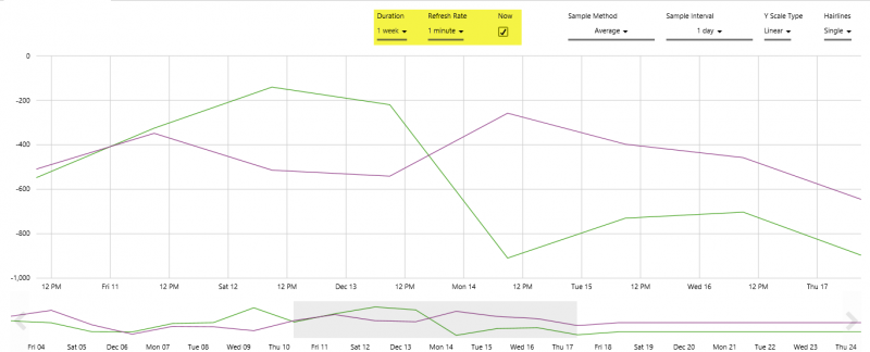 A Trend Spanning 1 week to Now, Refreshed every 1 minute