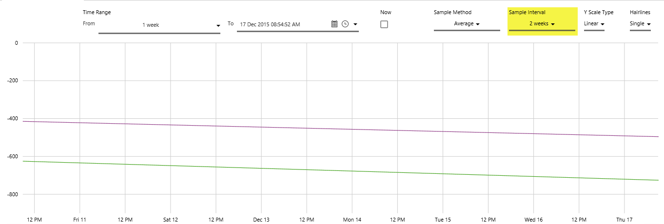 Select 2 weeks from the Sample Interval drop-down list.