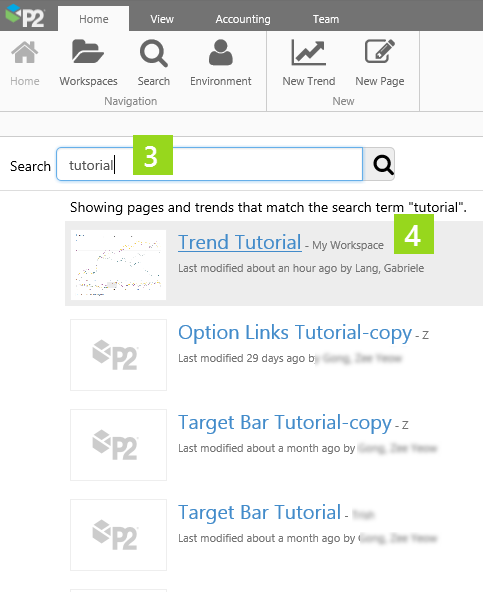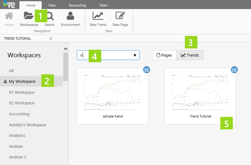 2: Click the workspace that contains the trend (for example, My Workspace).