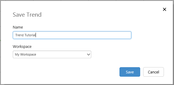 The Save Trend window opens. Type in a Name for your trend, and save to My Workspace or select a Workspace from the drop-down list.