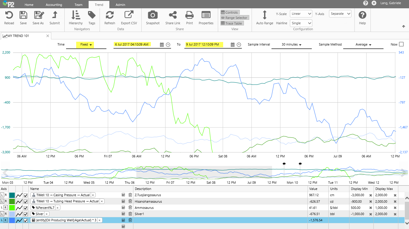 In this tutorial we’ll add a new trend, and then drop some attributes into the Trace Window to create trace lines. Next, we'll experiment with changing selections, using the range selector, and adding a hairline with comments before saving the trend. And finally, we'll locate and open the saved trend.