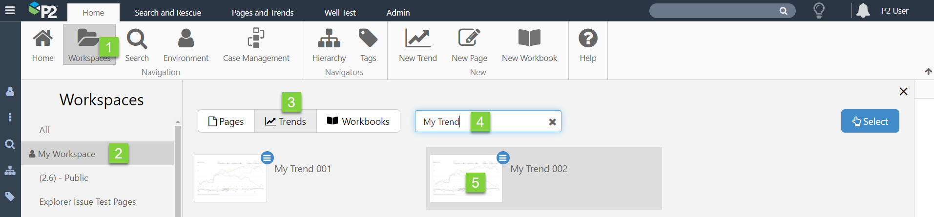 2. Click the workspace that contains the trend (in this example, My Workspace).