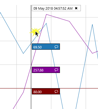 - When both Y Axes are enabled, hovering over one of the axes causes the hairline on the non-selected axis to fade.