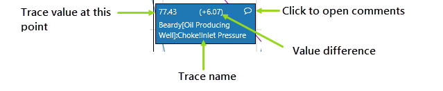 Initially, the information box shows only 3 items: the data value, the value difference, and the comment icon.