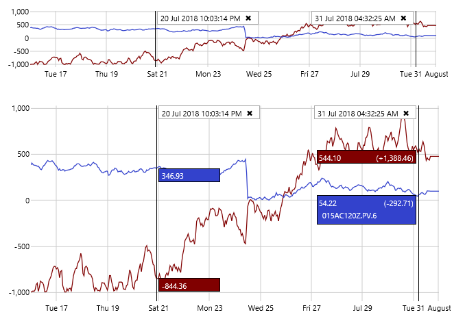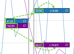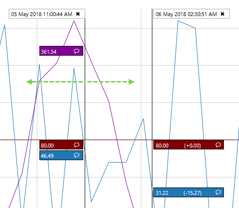Note: The Value Difference is only displayed when there are two or more hairlines. The value difference applies to a hairline's values, and those of the hairline immediately to its left.
