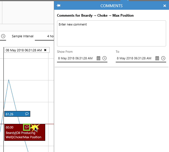 - For a chart, the comment icon is only visible when comments have been enabled in the configuration.