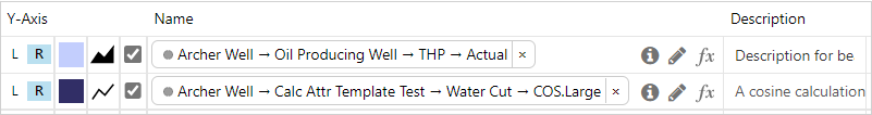 Important: The variables you use affect the time range of the chart, data collection method and interval, Y Scale Type, and number of allowable hairlines, as well as trace items such as tags. It is important that you consider the amount of data that your trend will fetch, and how this affects Explorer's performance. For example, do not request three months of data at a five second sample interval. Read more about how IFS OI Server fetches the data.