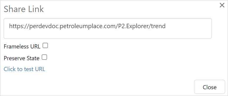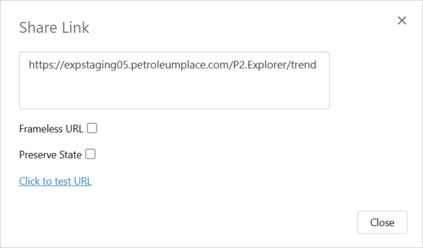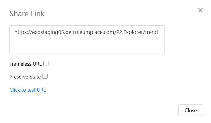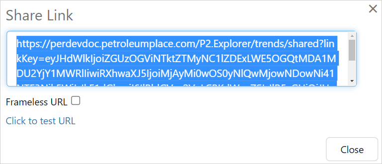 Select Frameless URL to open the trend outside of the IFS OI Explorer framework. A frameless URL has the parameter frameless=true appended to the URL.