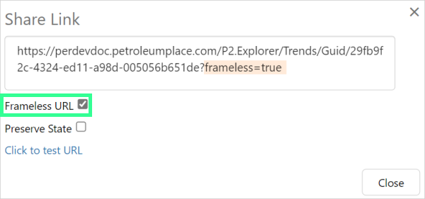 When the check box is cleared, the frameless parameter is not added, and the resulting URL opens the trend within the Explorer framework.