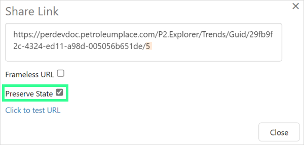 To link to the latest saved version of a trend, share the URL created without selecting Preserve State.