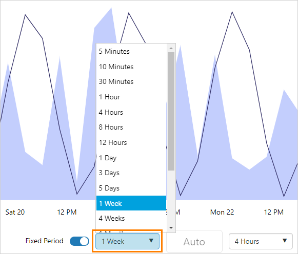 Options are: 5 minutes, 10 minutes, 30 minutes, 1 hour, 4 hours, 8 hours, 12 hours, 1 day, 3 days, 5 days, 1 week, 4 weeks, 1 month, 3 months, 6 months, 9 months, 1 year, 2 years