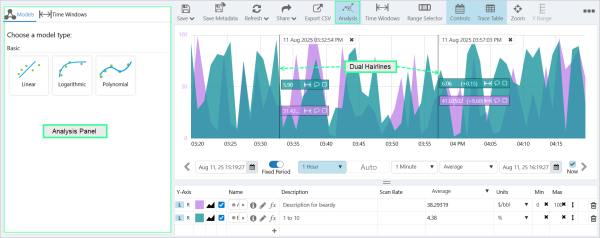 - Dual hairlines are automatically added to the trend in the Trace Window.