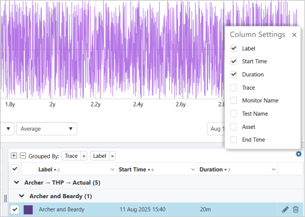You can customize which Time Windows appear in the table by using Column Settings (accessible via the column settings