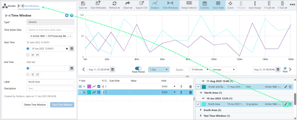 Time Windows can be created for any data item: tags, attributes, calculations, or analyses.