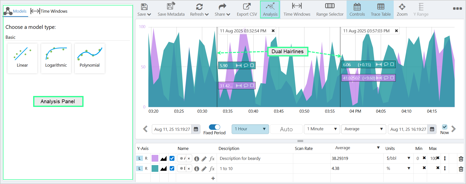 - Dual hairlines are automatically added to the trend in the Trace Window.
