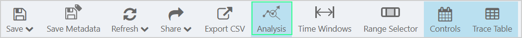 1. On the Trend toolbar, click Analysis. The Analysis panel opens to the left of the Trace Window.