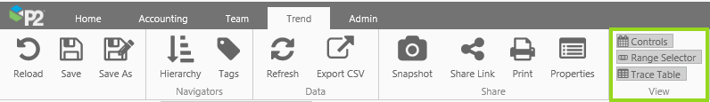 - Click any of the buttons in the View group of the Trend ribbon, to hide the respective sections: Controls, Range Selector, Trace Table.