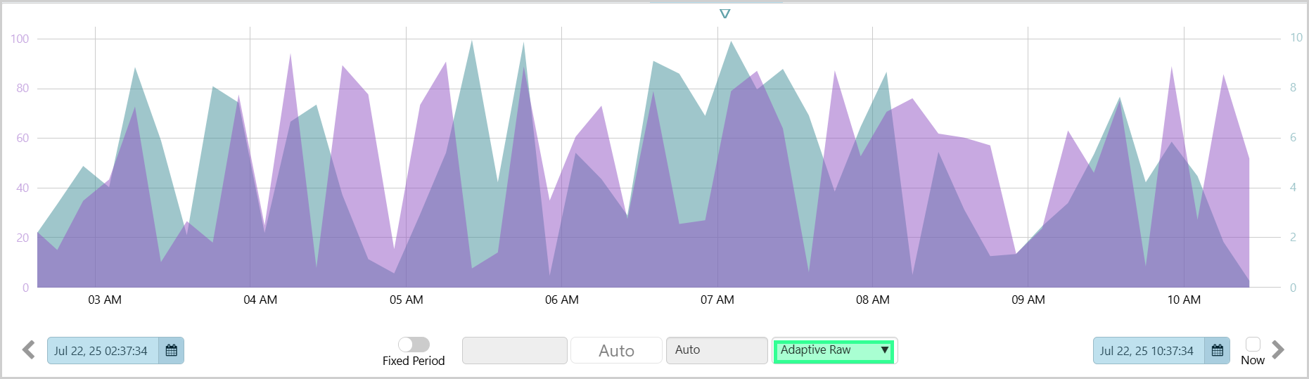 Using the Adaptive Raw method, you can view granular trends over up to two years, rather than the preset limit of eight hours for the Raw method.