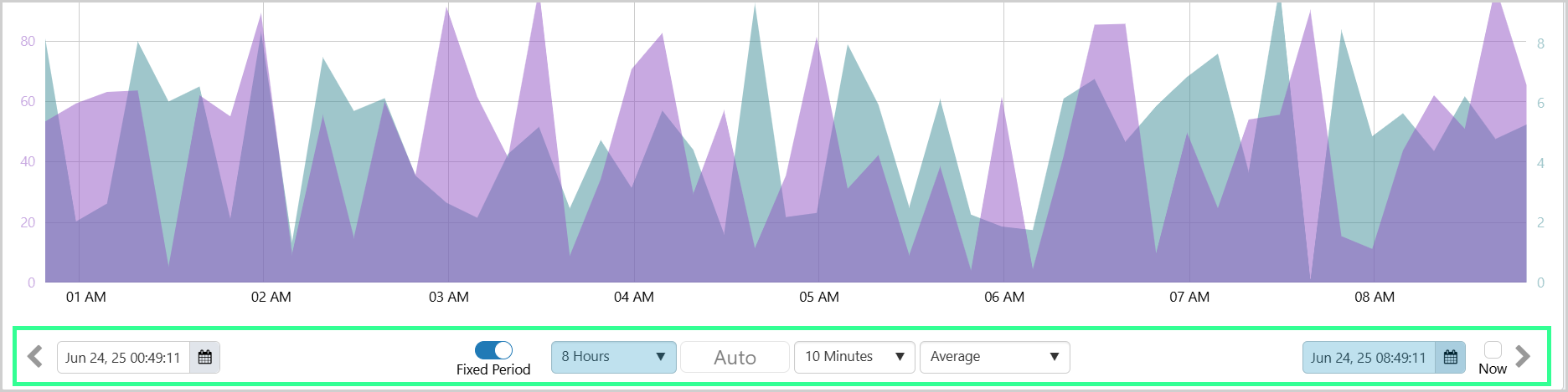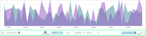 The Trend Controls enable you to alter the time range of the chart, adjust the data collection method and interval, and use navigation arrows to scroll through different time periods.