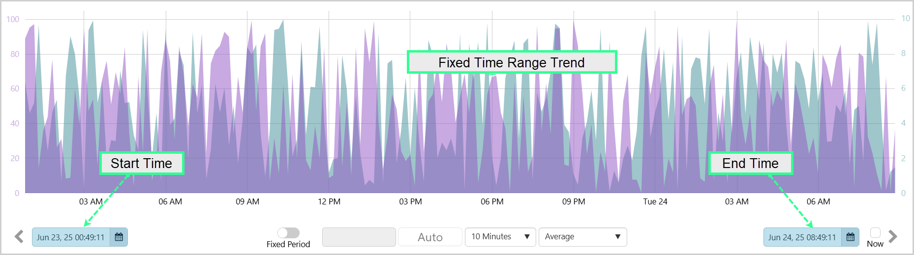 By setting the Start Time and End Time, the trend will cover a fixed time range.
