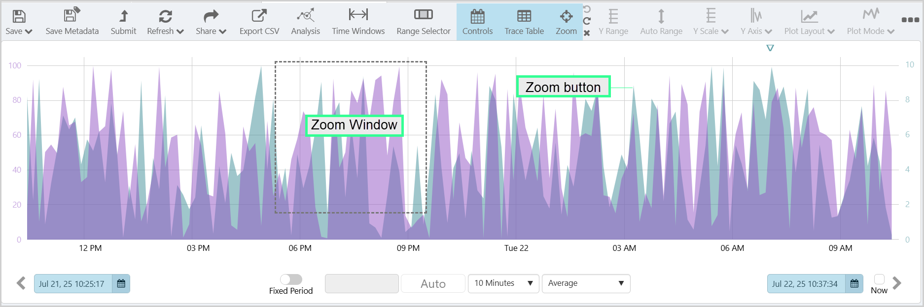 Use the Zoom function to look at an area of the trend in more detail.