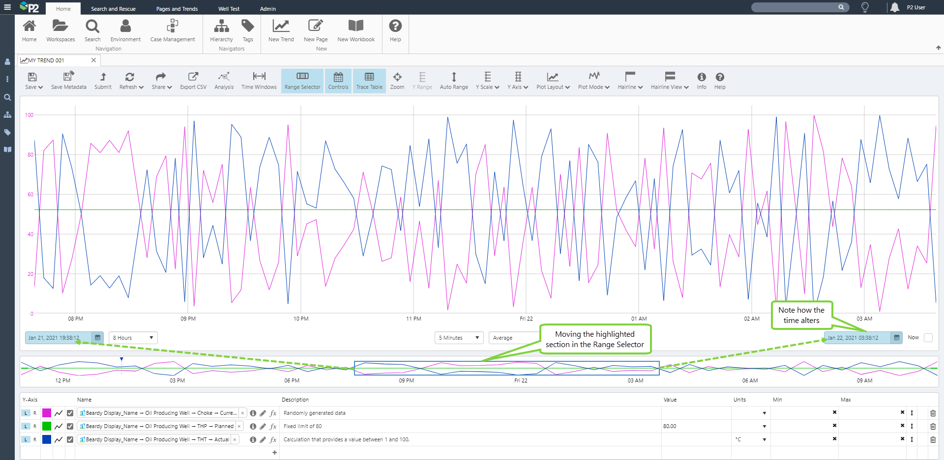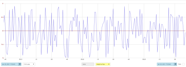 Adaptive Raw fetches far fewer data points from P2 Server (a maximum of 2000 points), yet renders a trend that is virtually identical to that produced when using the ‘Raw’ sample method (you may need to adjust the Sample Interval for Raw, to notice this).