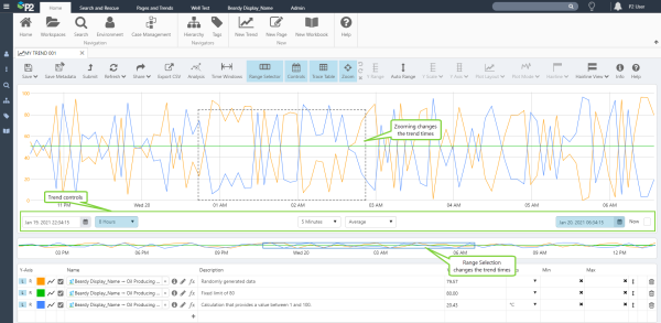 | 3. | Sample Interval | This is the sample interval (for example, 1 hour) that P2 Server uses to collect the trend data. See Note above for how the sample interval is calculated based on the trend's time range. |