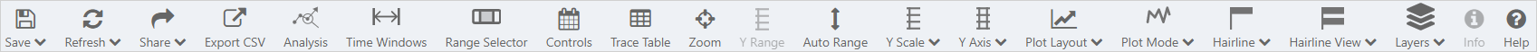 Controls | Toggle to show/hide the Trend Controls (date selectors, sample method and sample interval). Hiding the Trend Controls allows more space for the Trace Window. |