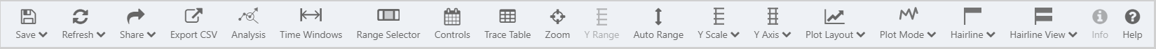 Controls | Toggle to show/hide the Trend Controls (date selectors, sample method and sample interval). Hiding the Trend Controls allows more space for the Trace Window. |