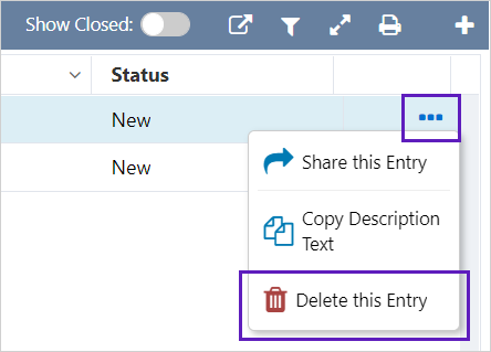 Deleting an entry will remove it from the system, along with any comments and attachments for that entry.